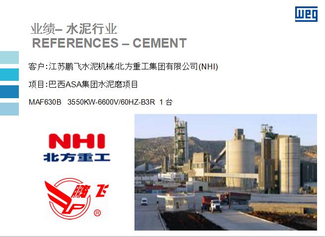 WEG高壓電機(jī)在水泥行業(yè)應(yīng)用的優(yōu)秀業(yè)績