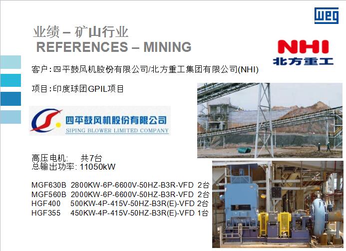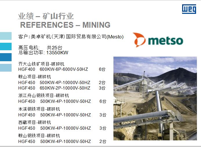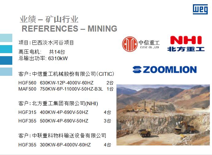 WEG高壓電機(jī)在礦山行業(yè)應(yīng)用的優(yōu)秀業(yè)績(jī)